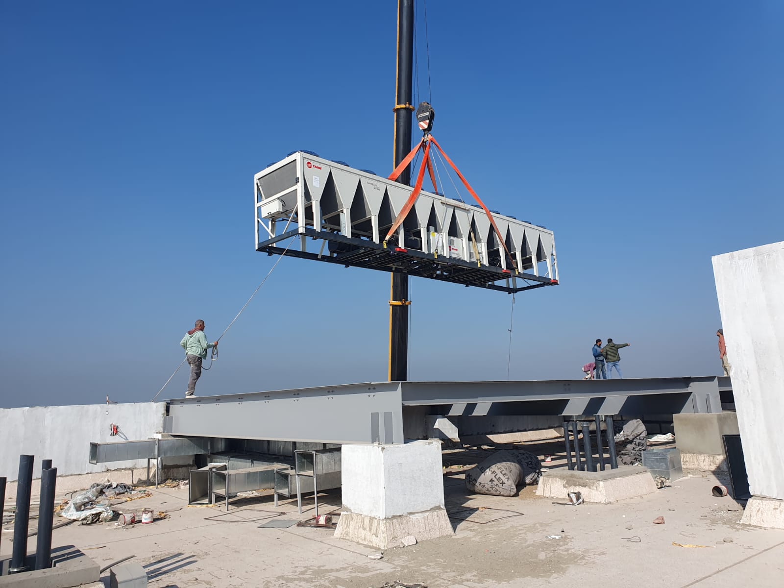 تم تصميم وتنفيذ الشاسيهات طبقا ً للإشتراطات المطلوبة وأكواد الأحمال المصرية القياسية حيث ينقل أحمال عدد أربع تشيللرات إلى الأعمدة الخرسانية أعلى كل مبنى.